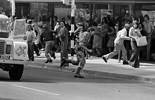 Durante junio de 1976, el año en que se registraron las primeras protestas antiapartheid en territorio sudafricano, Bloom estaba allí. Los estudiantes de secundaria negros salieron a la calle espontáneamente para manifestarse contra una nueva serie de leyes que reforzaban la segregación educativa —la educación de un niño negro costaba el 10% de la correspondiente a un blanco y la universitaria era directamente imposible para los negros—. Las protestas fueron reprimidas con una dureza sin parangón: hubo entre 200 y 600 estudiantes muertos a balazos.