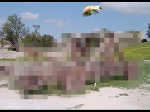 En esta foto observamos un exclusivo invento para permitir a los gatos introducirse en forma invisible en aquellos lugares donde tienen que ejercer sus actividades. Por motivos de seguridad el invento ha sido pixelado por lo que no podemos tener la mas mínima idea de que se trata.