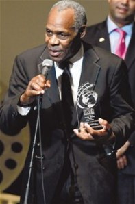 | Danny Glover al recibir un reconocimiento durante su visita al país. |