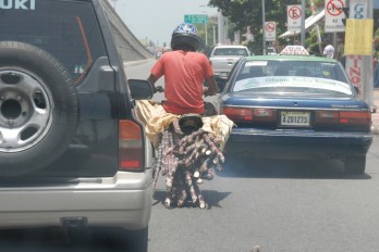 SANTO DOMINGO. Este señor, con su motor cargado de cañas, se desplaza temerariamente y a toda velocidad por la Avenida John F. Kennedy, a la altura de la Avenida Núñez de Cáceres, sin percatarse siquiera que iba arrastrando las cañas por el pavimento, como lo captó el lente del fotógrafo José Justo Féliz.