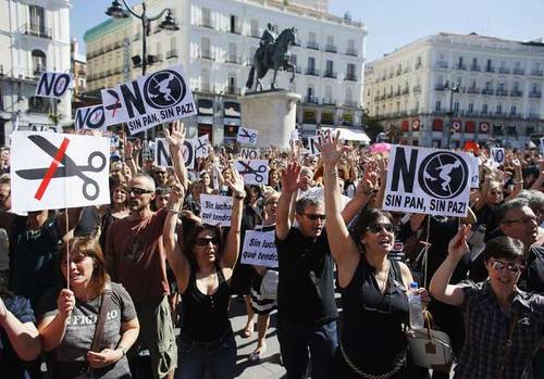 En España, los votantes sacaron a los socialistas en noviembre pasado, pero el gobierno conservador de Mariano Rajoy anuncia medidas de ajuste económico que desgarran las finanzas de la población con aumento de impuestos y recortes sociales.
