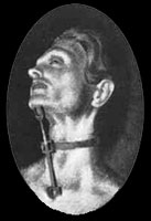 A la victima se la colgaba boca abajo de los tobillos, con lo que toda o casi toda la sangre bajaba hacia la cabeza, oxigenando el cerebro y manteniéndola consciente un tiempo mayor que en otros casos.