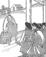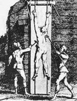 Si el peso no era suficiente se aplicaba un peso «extra» por medio de las cuerdas tirando del reo hacia abajo.