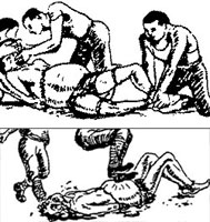 es una técnica de tortura en la cual se les desprenden los miembros a la víctima. Esta sufre primero esguinces, luego se desprenden las extremidades del cuerpo.