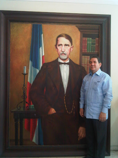 | Domingo Nuñez, posando frente al oleo de Juan Pablo Duarte pintado por el pintor de la patria Miguel Nuñez |