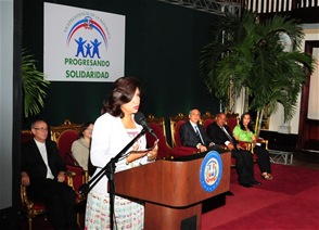 La vicepresidenta de la República, Margarita Cedeño de Fernández, presentó ayer los siete componentes del Gabinete de Políticas Sociales del Gobierno correspondientes al programa “Progresando con Solidaridad”, que ayudará a sacar de la pobreza a más de un millón 500 mil personas y creará 400 mil empleos en los próximos cuatro años, tal como lo anunció el presidente Danilo Medina.