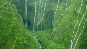 1.-El monte Waialeale: Esta montañosa zona de Hawaii situada a más de 1.500 metros de altitud registra más de 11.500 milímetros de precipitaciones cada año, lo que lo convierte en el auténtico «desaguadero del mundo». El monte es una caldera volcánica expuesta a las nubes y la humedad que llega desde el mar, formando una barrera que detiene las formaciones nubosas. Atrapadas, las nubes no tienen más remedio que descargar toda su agua, formando decenas de impresionantes cascadas.