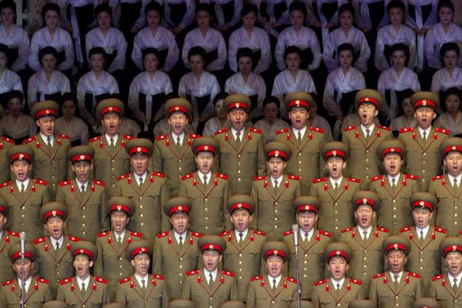 16 de abril 2012 – Pyongyang – Corea del Norte. El coro del Ejército coreano durante las celebraciones para conmemorar el 100 aniversario del nacimiento del líder fundador del país, Kim Il-Sung.