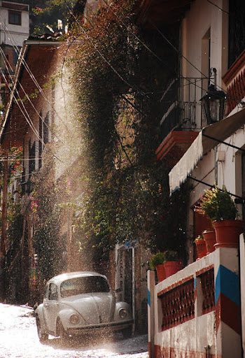 Su intención era dar testimonio de los cambios climáticos bruscos: «He intentado reflejar la calma tras una repentina y virulenta tormenta de granizo que paralizó la ciudad durante más de media hora, convirtiendo las calles en ríos. Incluso los habitantes de Taxco dejaron de atender sus comercios para contemplar el fenómeno meteorológico. En la foto se ve uno de los típicos taxis de la ciudad, sobre el que un tejado desagua las últimas gotas de la tormenta».