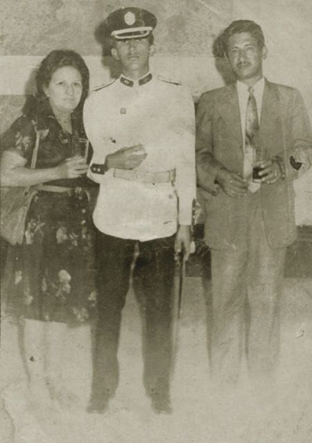 Fotografía de archivo de Hugo Chávez junto a sus padres durante su etapa en la Academia Militar.