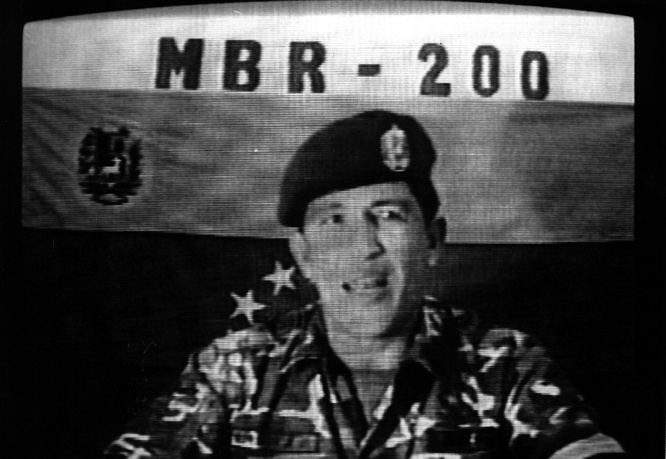 El comandante venezolano Hugo Chávez, en la intervención televisada en la que se rendía tras la intentona golpista de noviembre de 1992 contra el presidente del país, Carlos Andrés Pérez. Chávez acabó en la cárcel tras el fracaso del golpe, pero fue el lanzamiento de su carrera política. (AP)