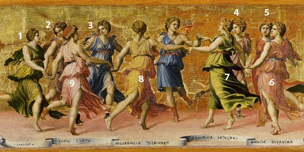2.- Terpsícore: La ninfa de la danza. También tuvo un hijo de sus escarceos con Apolo: el poeta Lino.