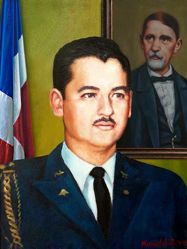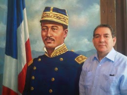 | Domingo Nuñez junto al oleo de Luperon pintado por el pintor de la patria, Miguel Nuñez |