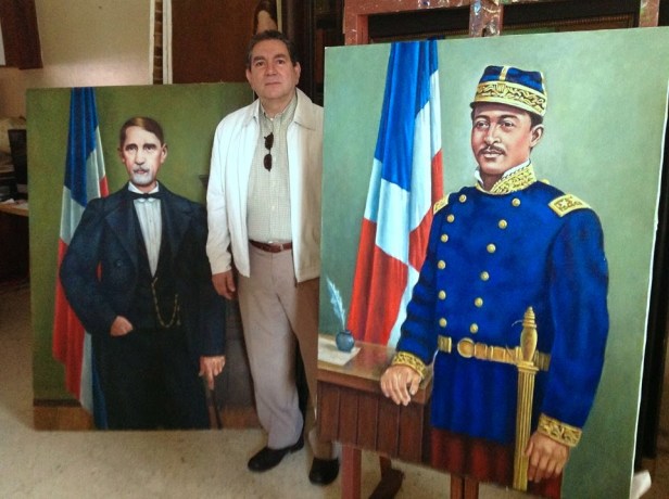 | Domingo Nuñez Polanco junto a los oleos de Duarte y Luperon pintado por el pintor de la patria Miguel Nuñez Polanco |