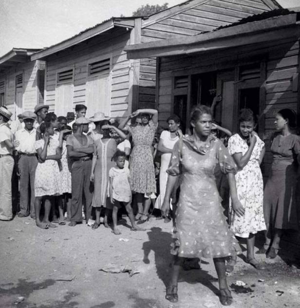 Es una pelea callejera , por lo que observamos…..son dos protagonistas, los demás son mirones y gente con poco quehacer., la foto contiene muchos elementos de la época…..la moda de los inicios de la década 1940….. la mujer aún no tenia la cultura de usar pantalones…… el sombrero en el hombre era sinómino del buen vestir…… y vemos que es un barrio capitalino, las calles eran polvorientas y las casas de madera ni hablar de la proliferación de viviendas en los traspatio…..Así era nuestra población en esos años en la ciudad capital…….Gracias a ese pintoresco fotógrafo del lente Conrado, que plasmó para la posteridad muchas imágenes de gran parte de la ciudad a partir de 1930 y 1950……..