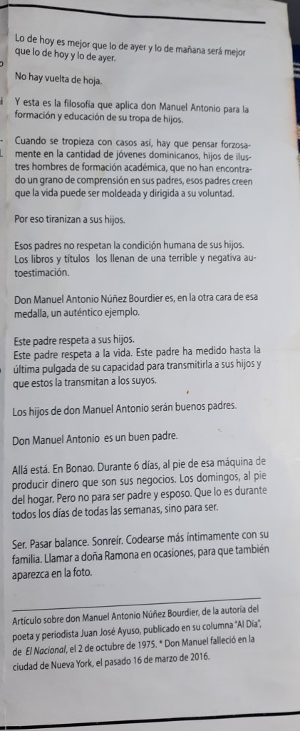 Articulo del periodista Juan Jose Ayuso sobre la familia Nuñez Polanco y muy especialmente de Don Manuel Antonio Nuñez Bourdiel, publicado en su columna diaria «Al Día» de el Periódico El Nacional el 2 de octubre de 1975