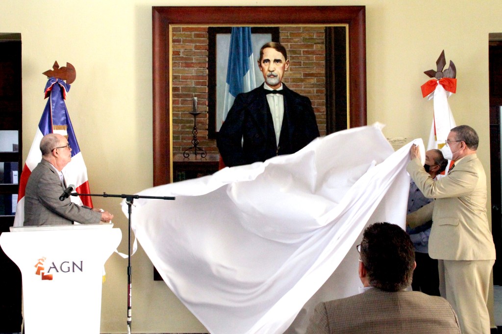 Momento cuando es develizado el óleo del patricio Juan Pablo Duarte en el Archivo General De la Nación