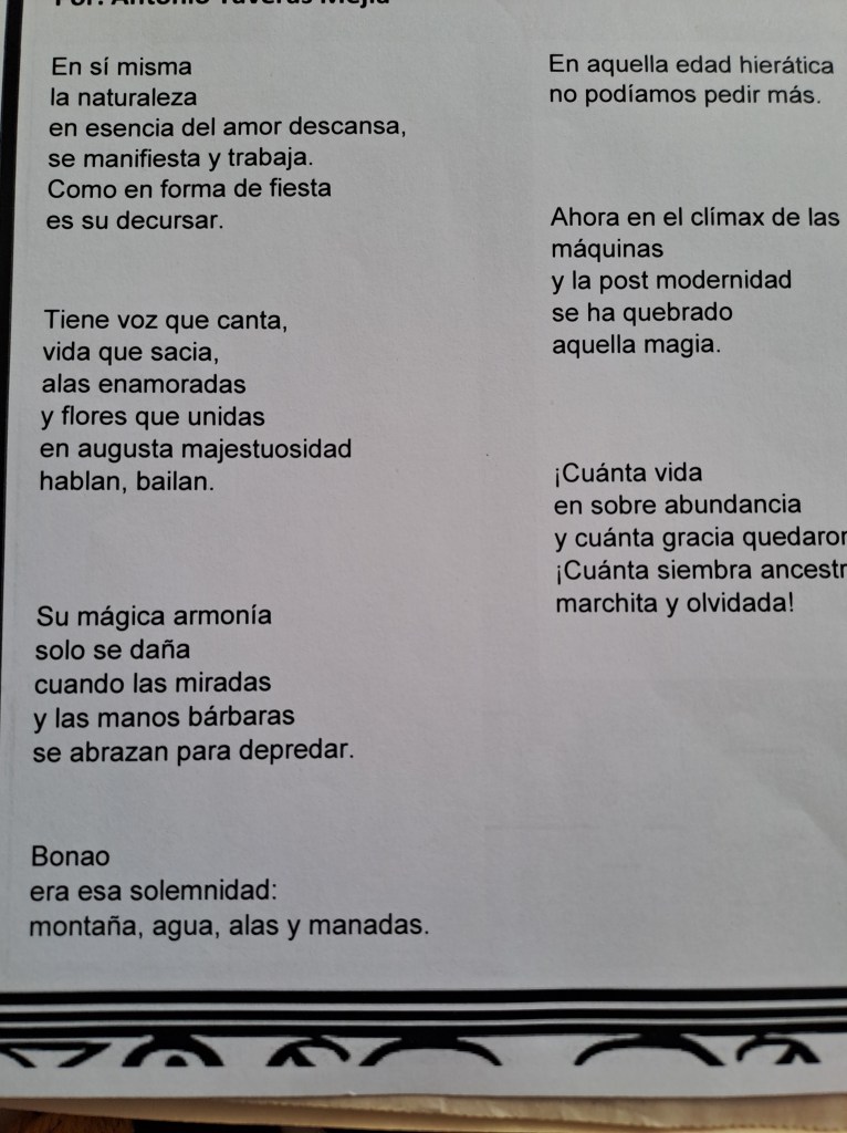 Pero más allá del poema, es justo mencionar a su autor: Antonio Taveras Mejía, amigo entrañable, intelectual comprometido con las sanas causas del pueblo dominicano y, en particular, con su amado Bonao. Autor de varios libros y activista cultural a tiempo completo, su voz no solo se alza en la poesía, sino también en la vida cotidiana, donde su quehacer está guiado por la ética, la sensibilidad social y la pasión por la cultura.